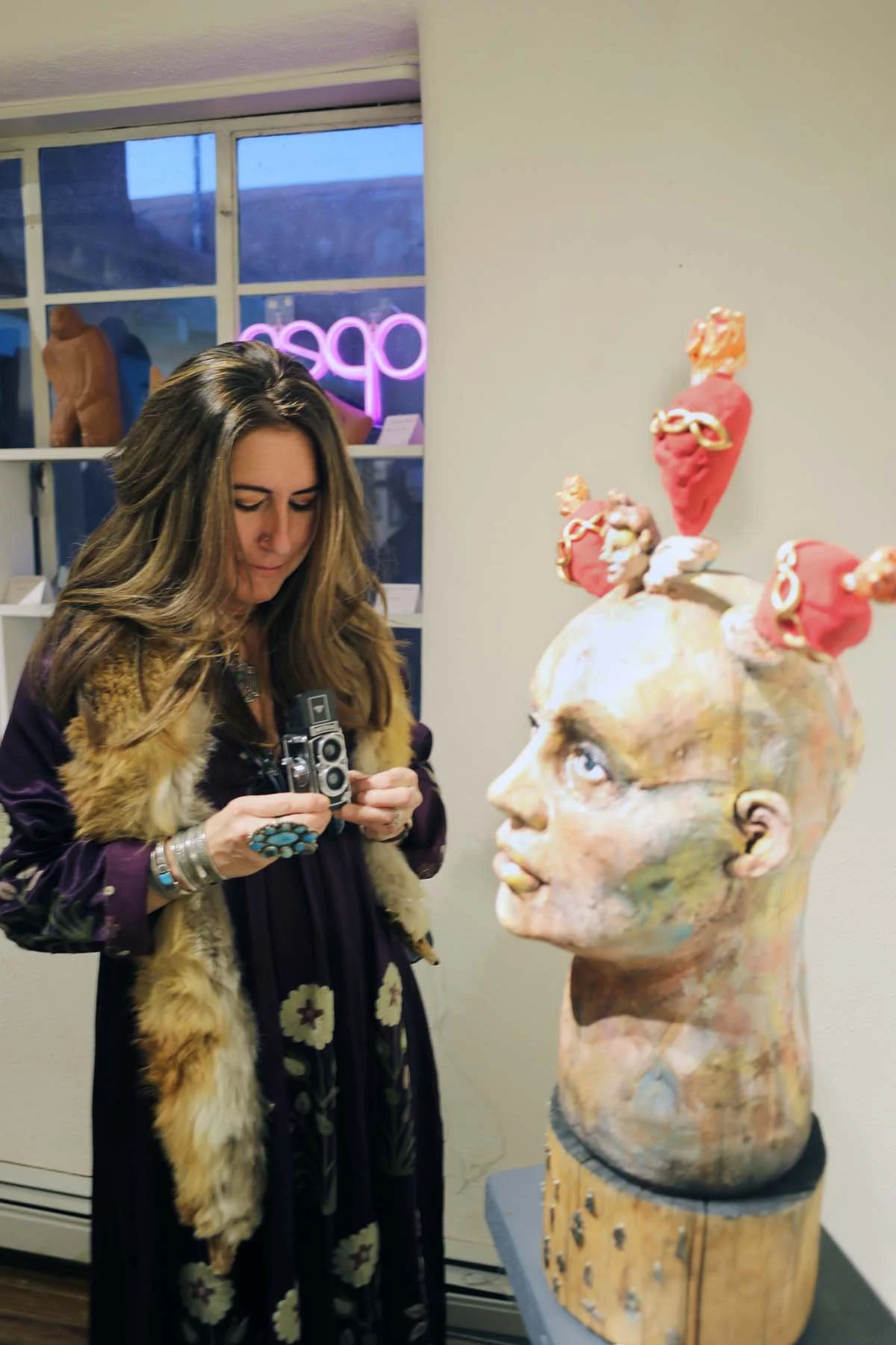 When my feet hurt from journeying, you can find me sculpting, working on surface pattern designs, and reading fortunes in my studio in Santa Fe, New Mexico.